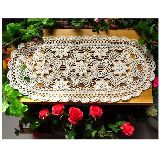 Handmade Crochet Lace Oval Lucky Flower Tablecloth Table Runner Doilies Doily 12x24 Inch Beige Walmart Com